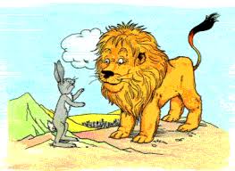 thấy một tên sư tử cặp mắt giận dữ đang trừng trừng nhìn nó. Sư tử liền rống